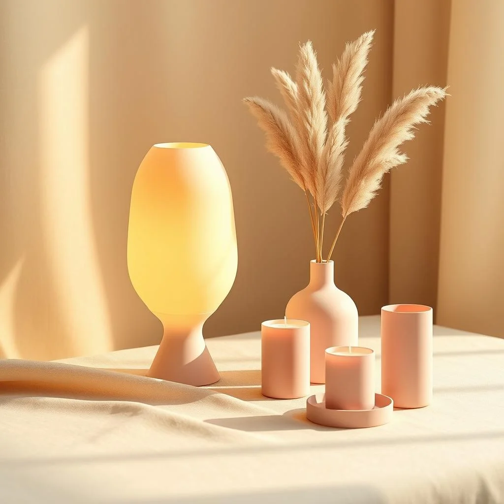 Премиальный 3D-печатный декор для дома: светильники, подсвечники, вазы и аксессуары в нежных пастельных тонах.